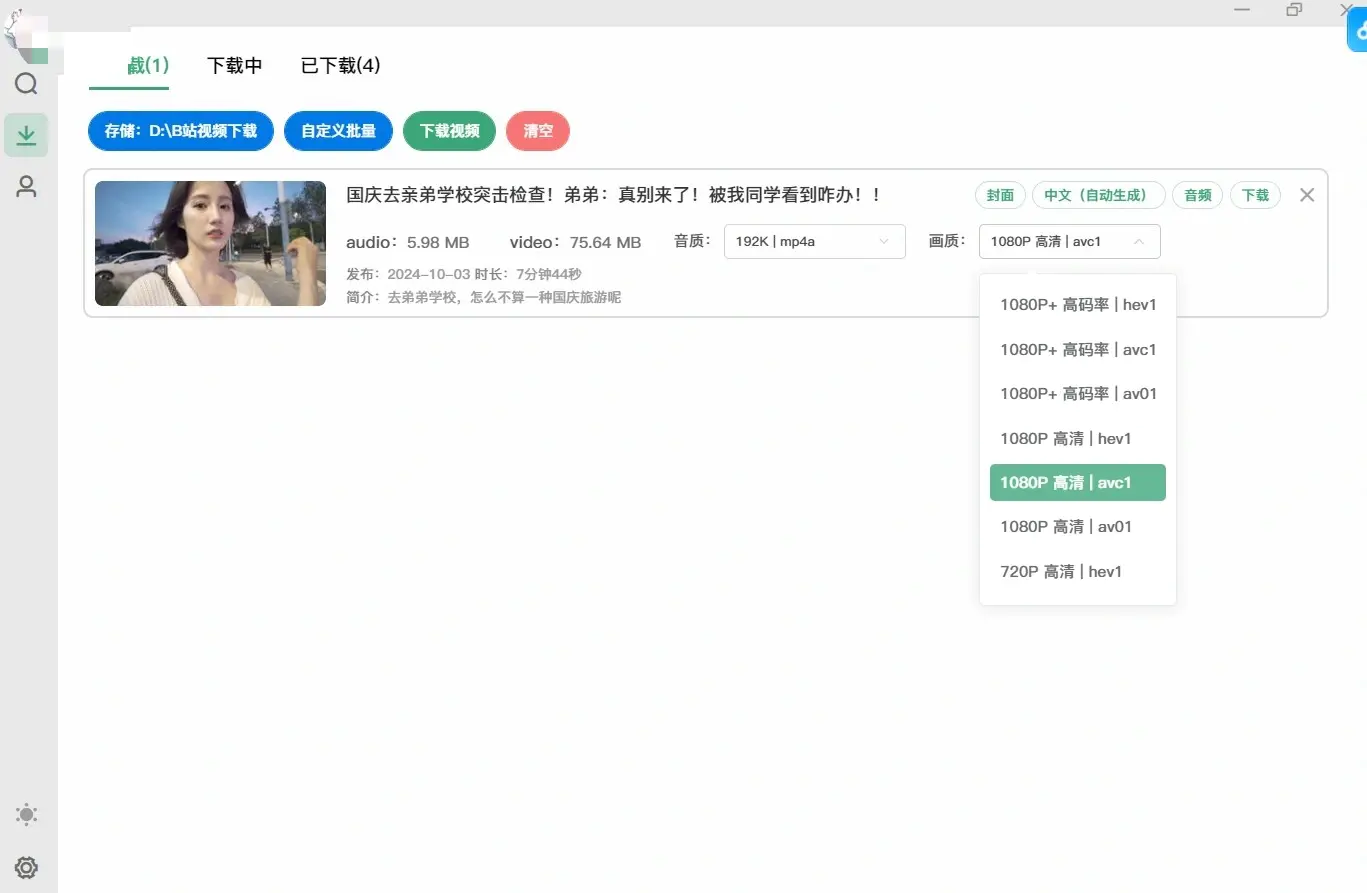 支持由UP主上传的单集,多集以及相关封面,弹幕,字幕,音乐,刮削等等,支持任意粒度批量组合,登录后支持到1080P,大会员可获取所有画质及音质。我测试的是没有登录,随便找了个视频,完全没问题。可以选择音质和画质,下载目录