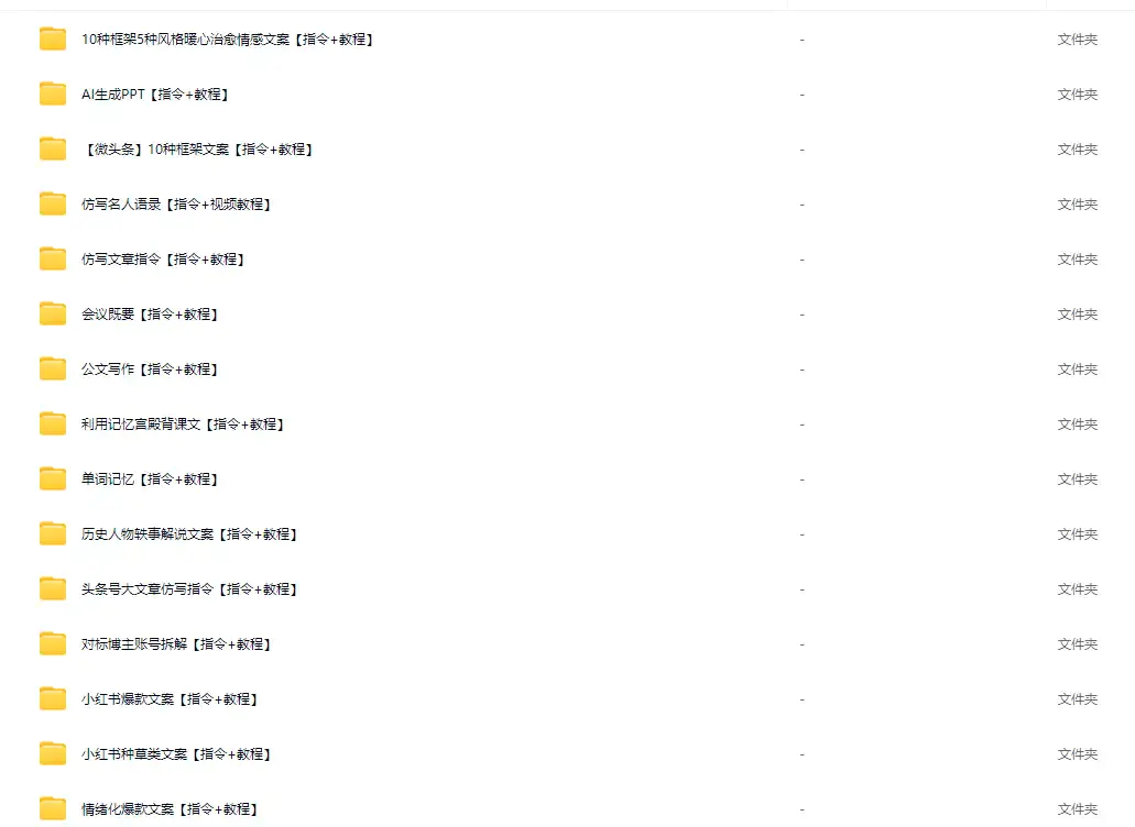 - AI文案创作:提供高质量的小红书、公众号、短视频等平台的爆款文案指令,助你打造吸引人的内容。