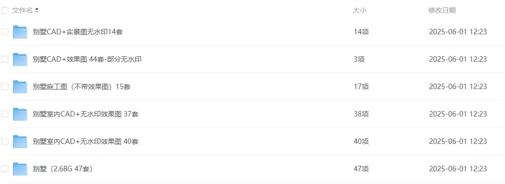 资源包包含47套别墅设计方案、44套CAD与效果图配套文件,以及37套高清无水印室内效果图。每套资源都经过专业筛选,CAD图纸精准标注,效果图高清呈现,完整展现别墅设计的每个细节。