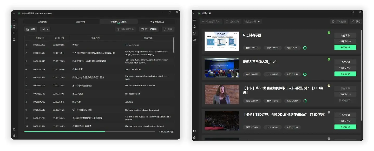 直观的字幕编辑查看界面,支持实时预览和快捷编辑