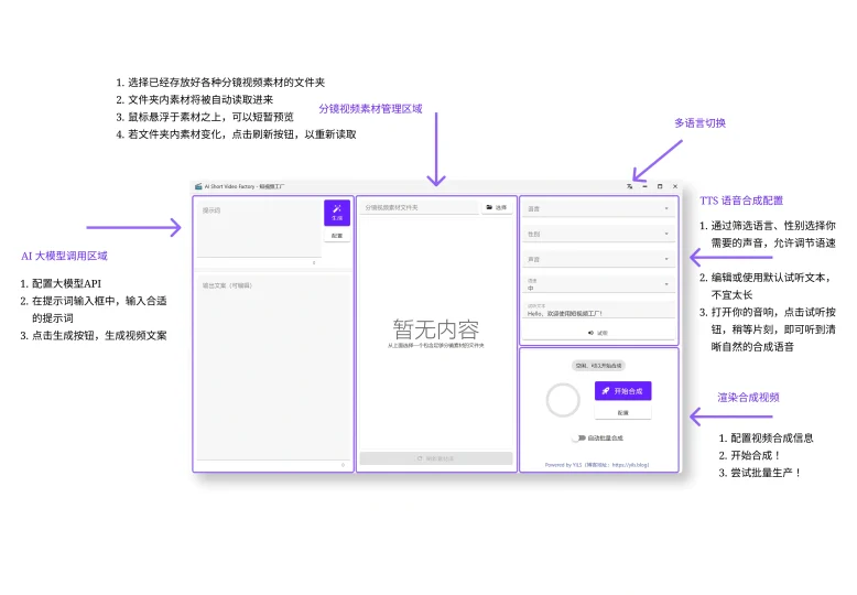 它能一键生成产品营销或泛内容短视频,通过AI自动完成脚本撰写、配音、字幕与剪辑渲染。
